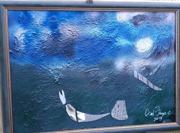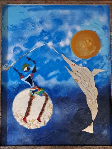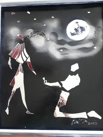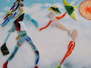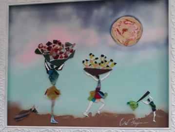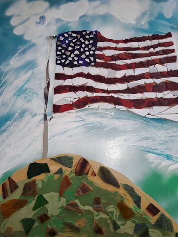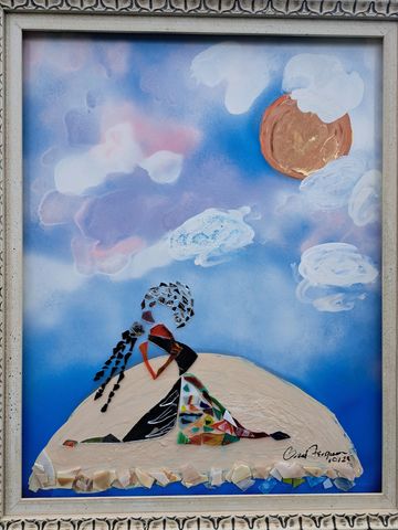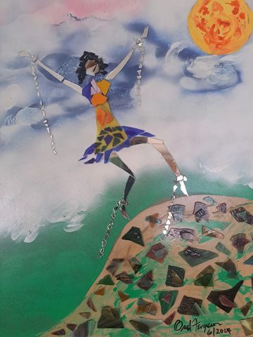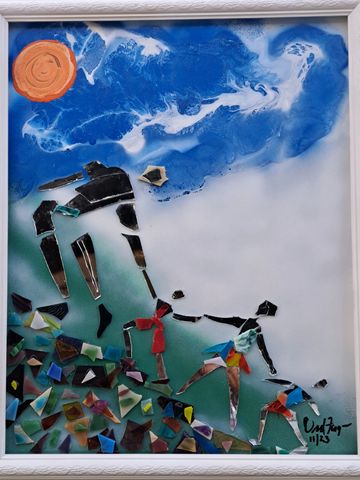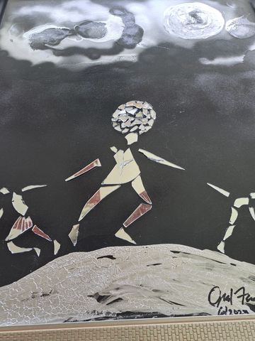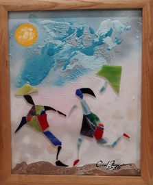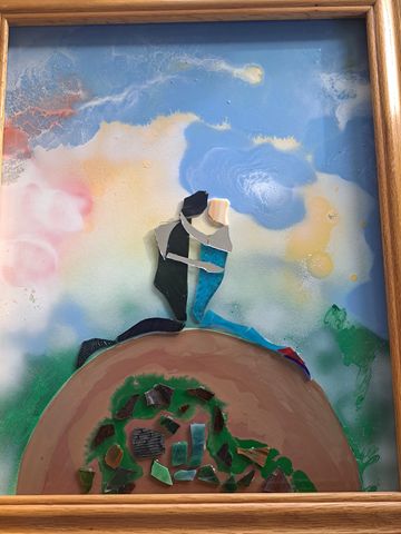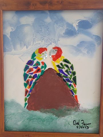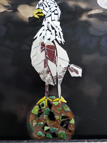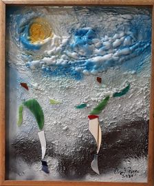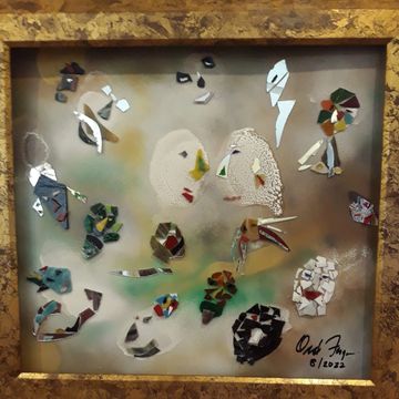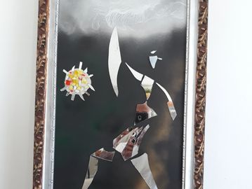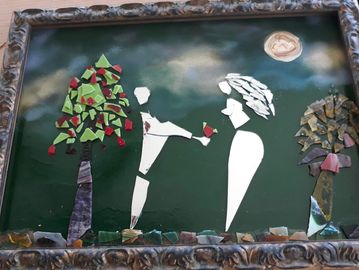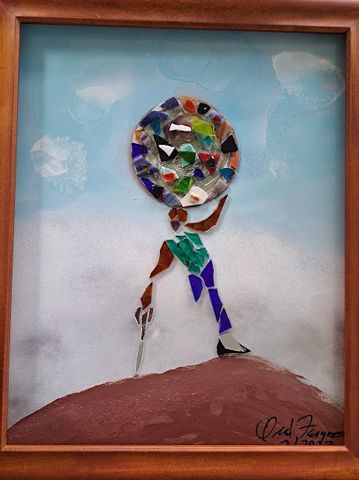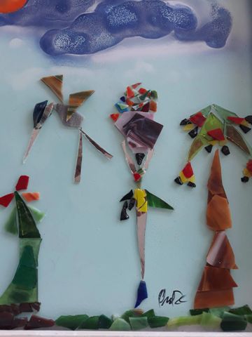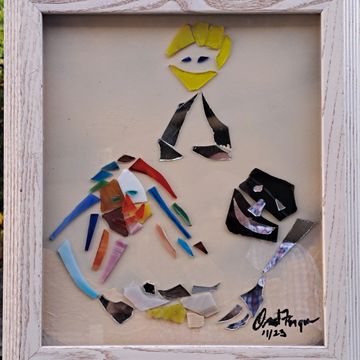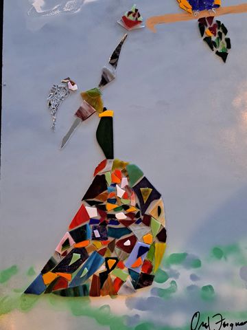 These unique handcrafted images are created using broken mirrors and stained glass. No pictures can ever be duplicated. To purchase, please contact the artist.